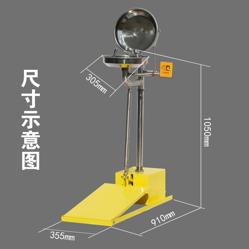 ●开关方式:脚踏。使用时只需站上踏板,清洁的水从洗眼喷头自动喷出,使用后离开踏板,进水开关关闭。进水开关关闭的同时,系统自动转换为排空状态,系统在5秒内自动排空洗眼器管道内部积水,起到防冻的效果。